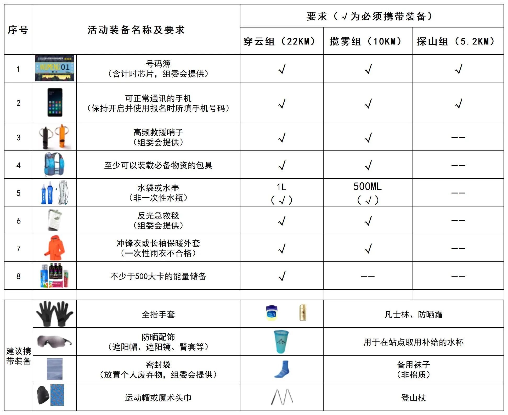 · 注意:务必根据各组别竞赛装备表携带竞赛装备。