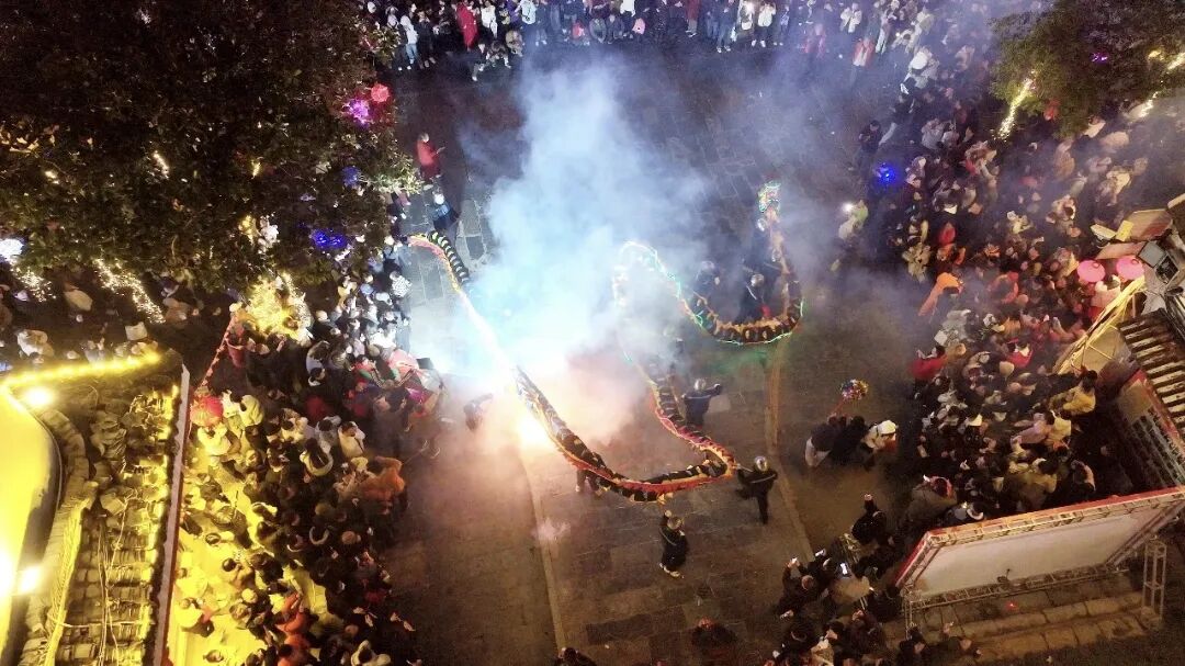 依托“马”上追龙·古城寻迹线,镇远古城深挖龙文化内涵,创新推出“民俗+夜景”融合产品,百米长龙闹新春、龙灯踩街等活动轮番上演,游客漫步赏夜景、品美食、体验草把龙习俗,年味十足。