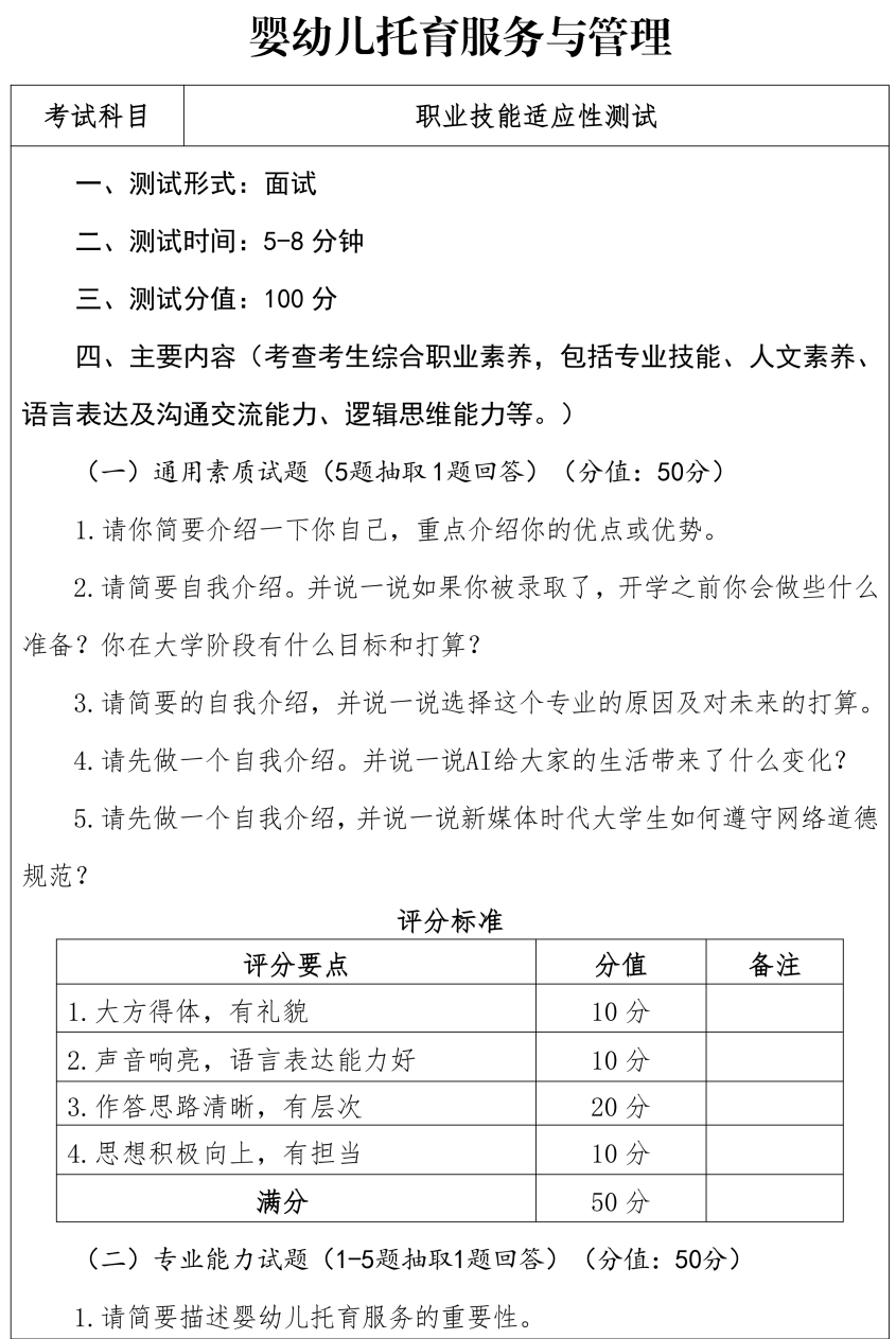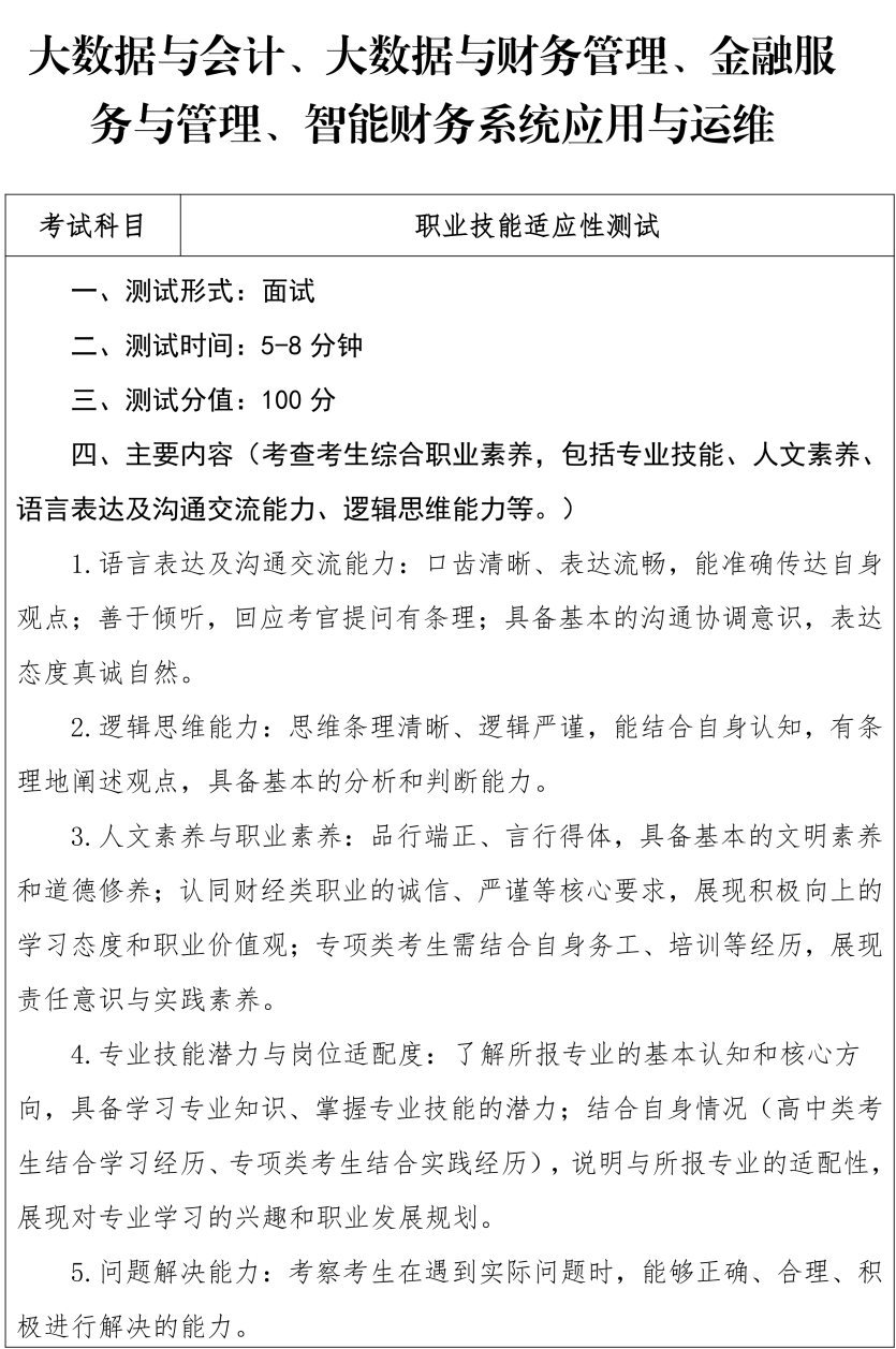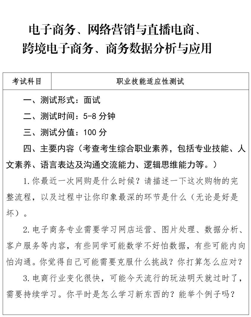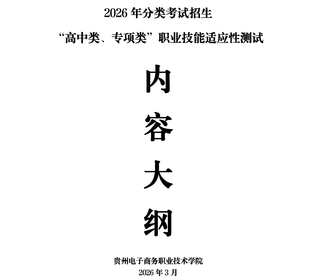 贵州电子商务职业技术学院2026年分类考试招生“高中类、专项类”职业技能适应性测试内容大纲