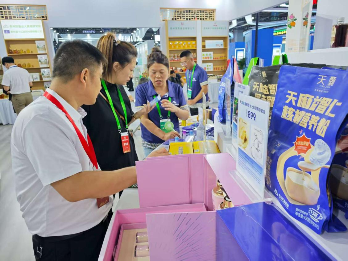 作为毕节天麻产业代表 ,贵州两山天麻产业集团携全产业链产品矩阵重磅登场!从天麻康茶、天麻养酒等传统深加工,到药食同源衍生品、美妆跨界创新,再到助眠口服液、康养食品等数十款“健康新宠”,用多元化产品诠释“小天麻”的无限可能。展会现场,吸引了众多全国的采购商前来参观洽谈。