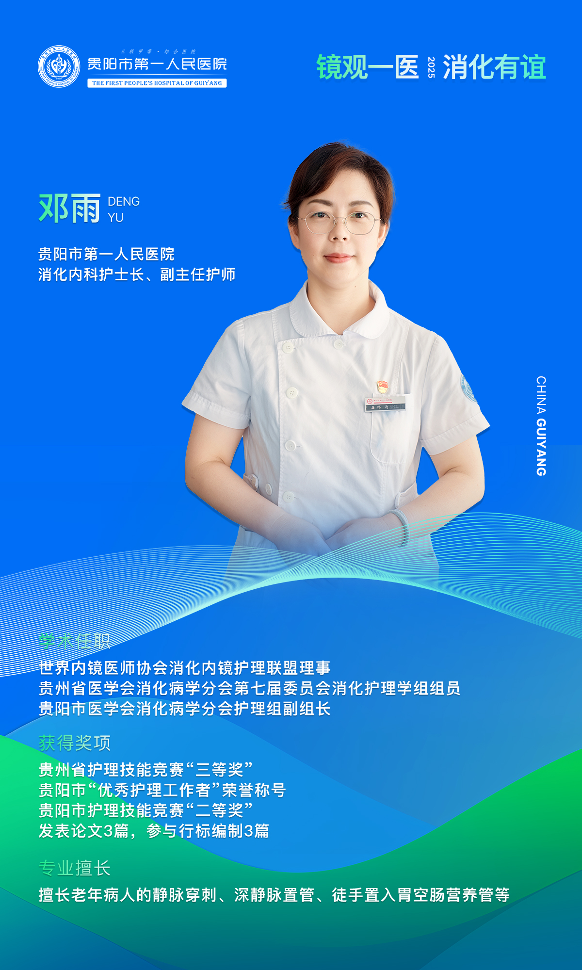 在消化内镜的方寸之间,有一束光,为我们照亮生命的细微之处;在守护健康的漫漫长路,有一群人,为我们披荆斩棘。他们,是医生,是护士,是并肩作战的“消化人”。“镜”观一医,消化有“谊” ,本期,让我们一同认识贵阳市第一人民医院消化内科护士长——邓雨。