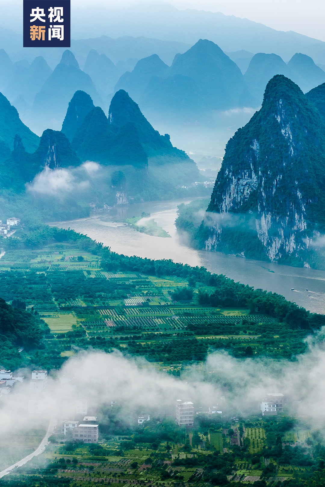 ✍🏻广西阳朔县属于典型的喀斯特地貌,漓江穿行而过,一个个独立的山峰拔地而起,造就了“山如碧玉簪”的独特美景。