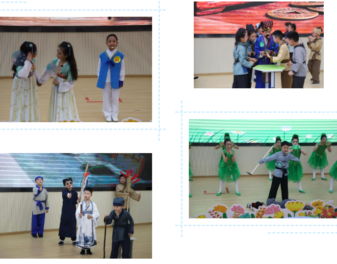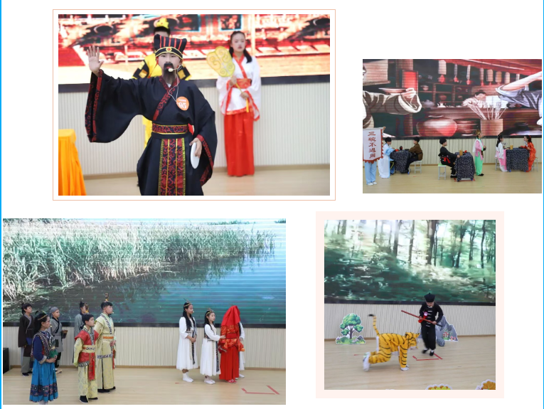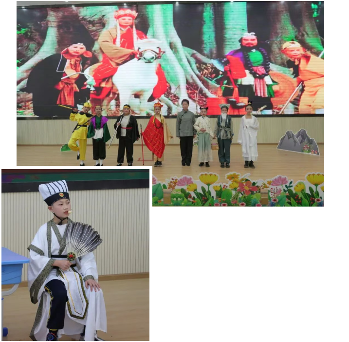 高年级则挑战经典篇目,《武松打虎》《西门豹治邺》《草船借箭》《将相和》等,有模有样、气势不凡。小演员们台词流利、配合默契,配上精美的服装道具与贴切的背景音乐,将名著中的人物鲜活地搬上舞台,展现出扎实的阅读功底和出色的表现才能。