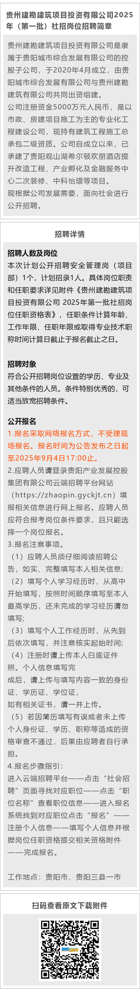 【国企】贵阳城市综合发展有限公司子公司招聘!报名截止时间:9月4日!