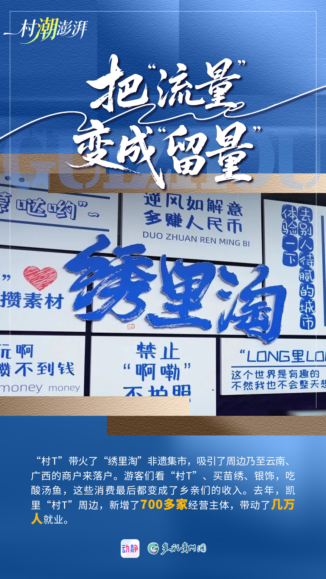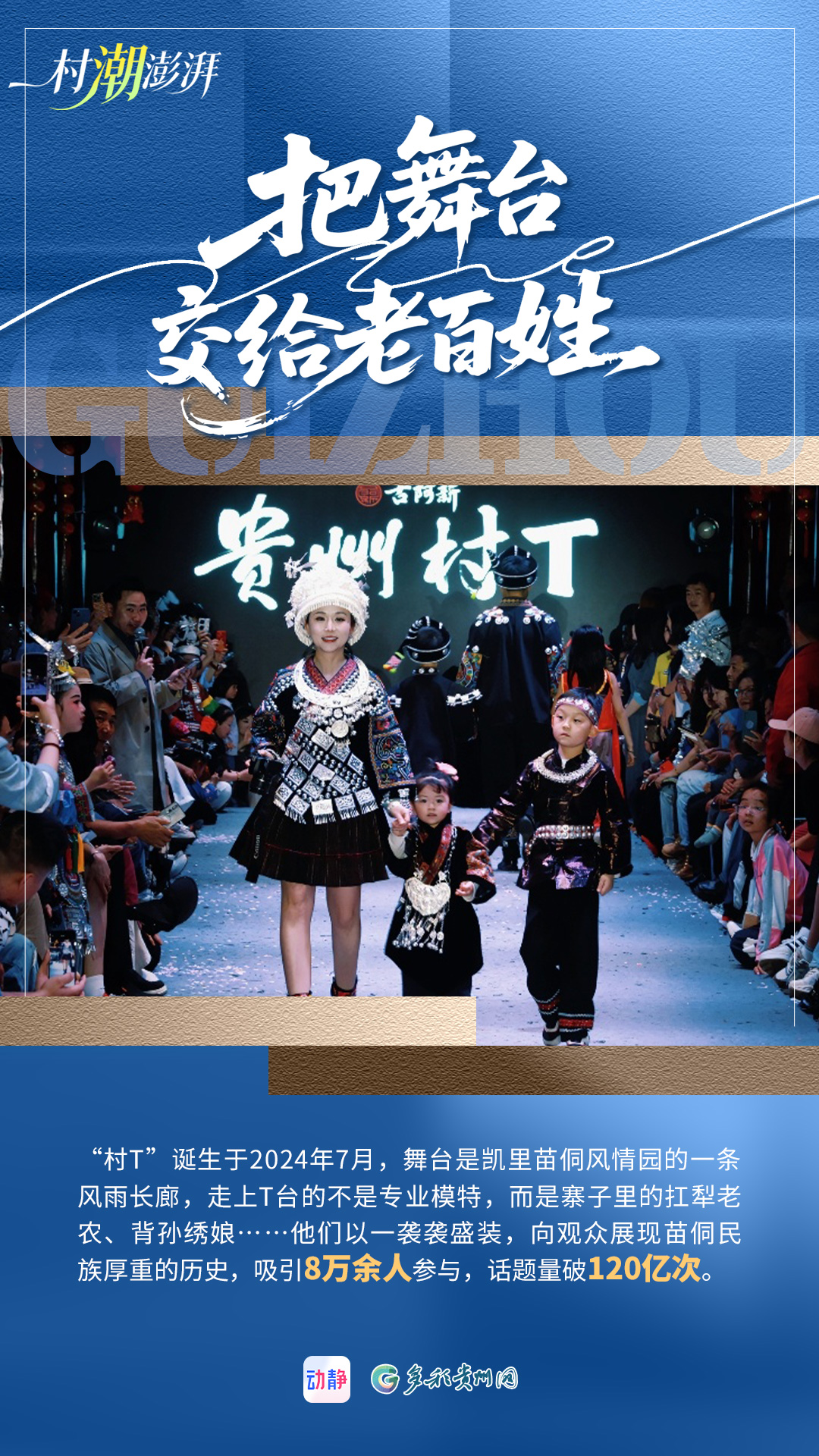 在贵州凯里,一场关于时尚与传统的对话悄然开启。“村T”以风雨长廊为舞台,让普通百姓成为主角,在这里走的不是“猫步”,是老百姓自己的日子,是群众对美好生活的向往。“村T”从田间地头走到到春晚舞台,从贵州走向世界时尚舞台,从视觉盛宴到释放民族文化魅力,在全网刷屏中,展示着多彩贵州的文化自信与质朴新潮。