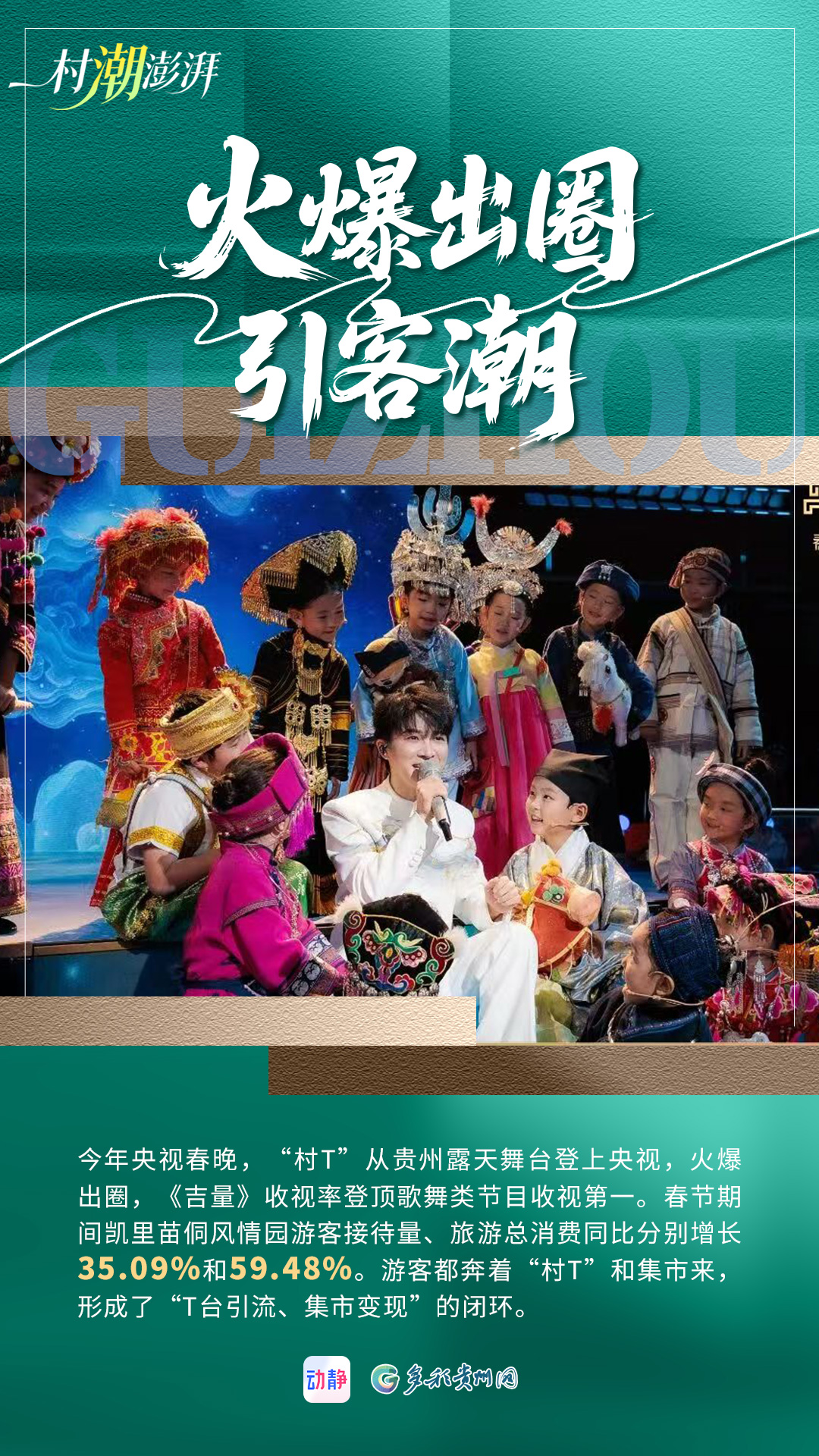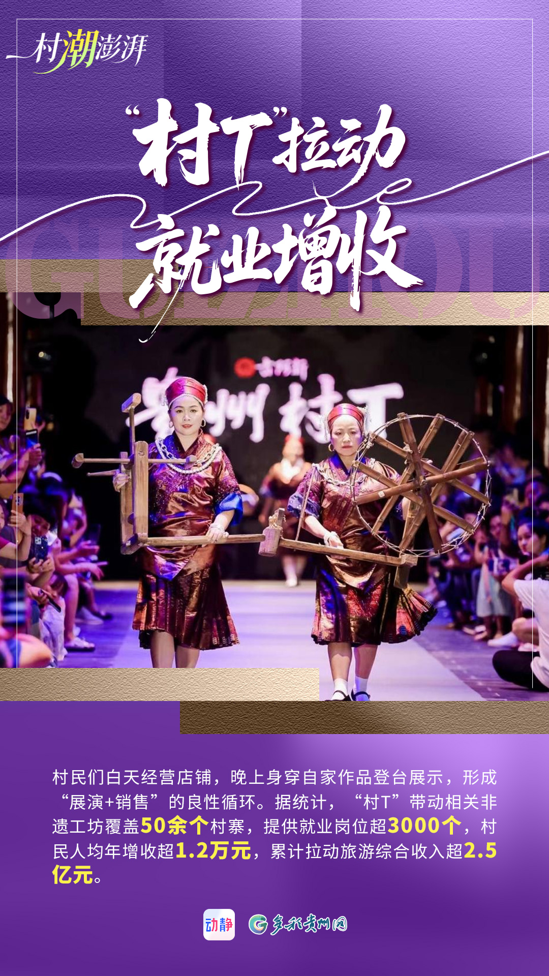 编者按:从“村BA”到“村超”,从“村T”到“村马”,再到“村晚”“村舞”……近年来,贵州以一系列“村字号”IP为连接,以流量转化为抓手,深入推进文旅体融合、相互赋能,不仅吸引了八方来客,也带热了当地旅游经济,交出一份扎实而饱满的发展答卷。动静-多彩贵州网特别推出《村“潮”澎湃》系列海报,将贵州乡村中那股自发、鲜活、澎湃的“潮”力量凝聚于方寸之间,展现文旅体融合带来的无限生机与动人故事。