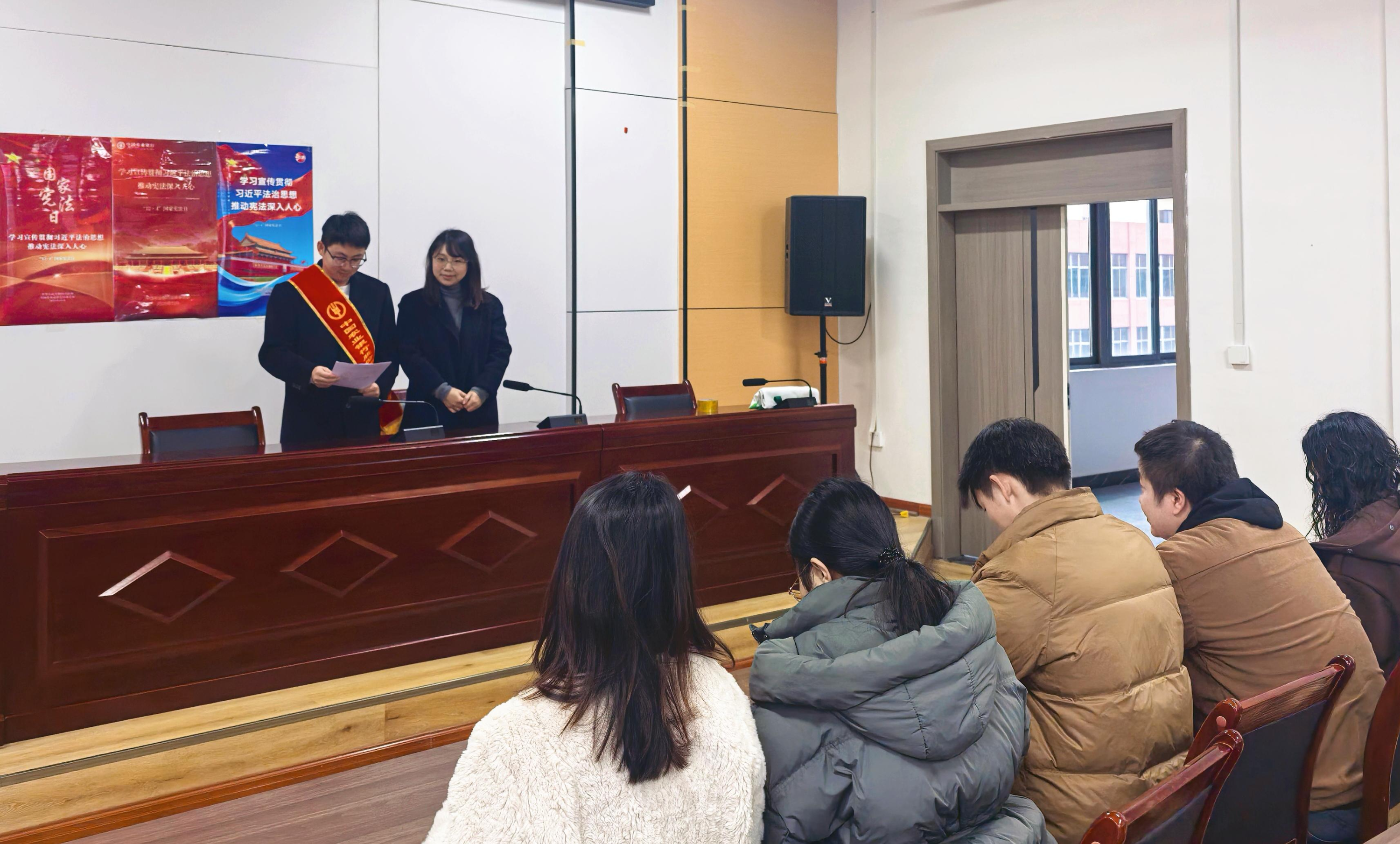 12月2日,农行兴义市支行普法小分队首先来到了义龙新区的一家医教企业。利用员工的午休间隙,工作人员在会议室设立了临时的“法治小讲堂”。宣传员结合《中华人民共和国宪法》中关于公民权利与义务的规定,聚焦员工关切,解读宪法中劳动权益保障、财产权保护条款,同步宣讲《反洗钱法》经营合规要点,受到了企业管理者与员工的一致好评。