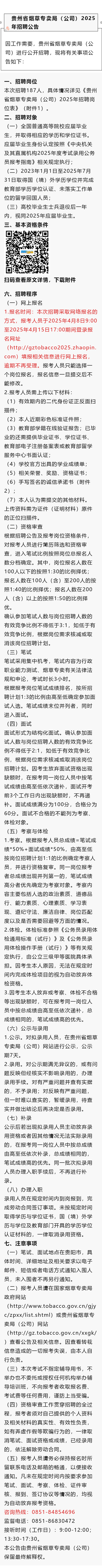 【国企】贵州省烟草专卖局招聘187人!正在报名中!