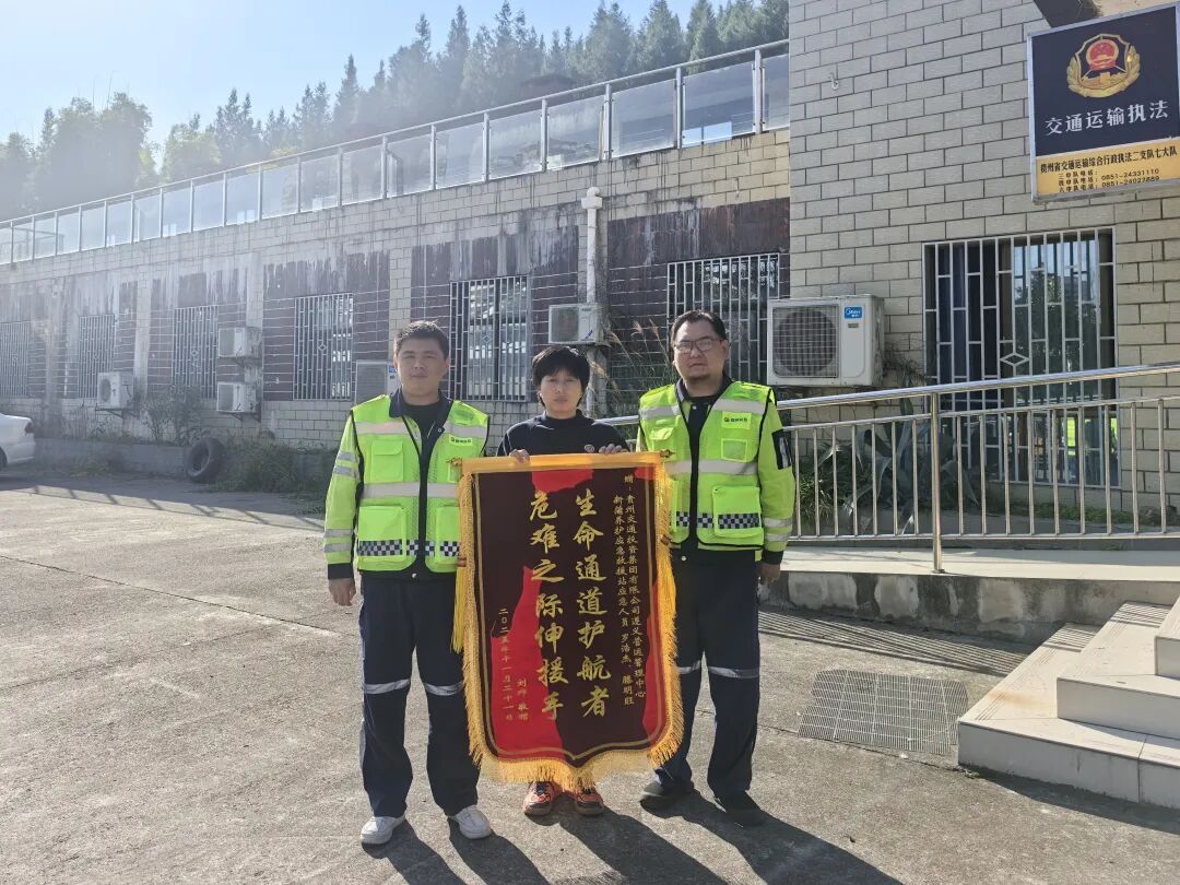 今天,司机家属手持一面印有“危难之际伸援手 生命通道护航者”字样的锦旗,亲自送到工作人员手中表达感激之情。家属激动地表示:“感谢你们的救命之恩,也感谢你们为他保住了这车货物,你们是真正为老百姓着想的人!”