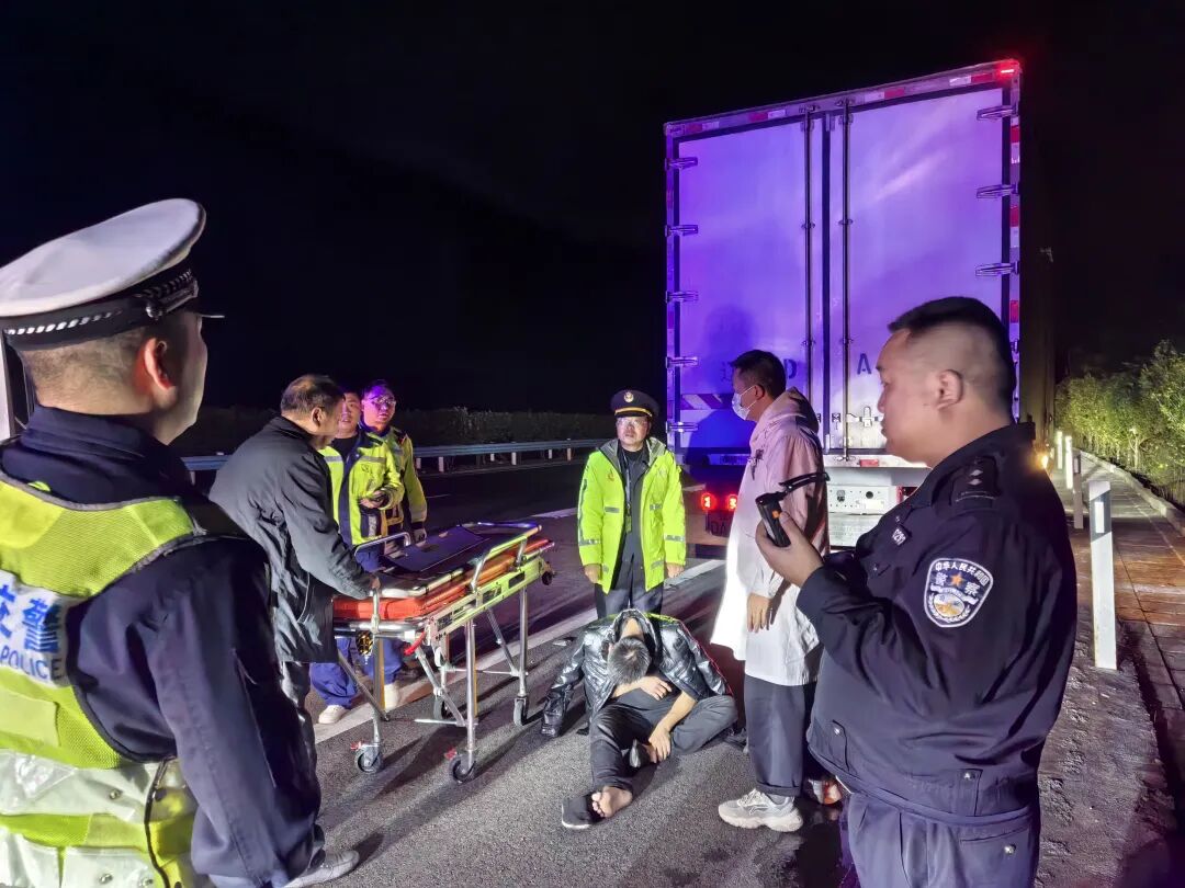 事发当日凌晨1点39分,遵义营运中心思遵监控所接到12328交通运输服务平台转警通知:在G56杭瑞高速思遵段下行K1567公里处,有过往驾驶员报警称发现疑似有人员躺在应急车道,其余情况不明。时间就是生命!监控所工作人员立即启动应急响应,精准锁定事发点位,同步通知交警、路政及应急救援单位前往救援,并通过沿途路段情报板发布诱导提示信息,确保生命通道畅通。新蒲养护应急救援站应急人员火速赶赴现场,发现一辆冷藏式货车停在应急车道,司机倒地睡在车后方并出现发抖抽搐症状,应急人员立即联系120,开启生命救援绿色通道。