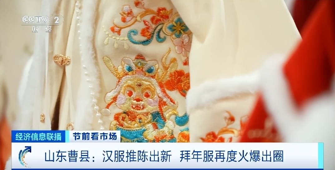 2024年山东曹县马面裙火爆“出圈”,今年,集中国风与时尚、喜庆元素于一身的“拜年服”受到市场热捧。目前,曹县汉服线上线下订单大增。