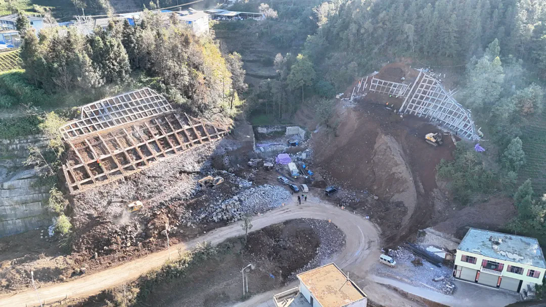 记者在五福街道廷必村东阳组小弯子施工路段看到,挖掘机挥舞着机械臂,用碎石填平路面;压路机来回穿梭,夯实路基;工人们手持浆刀,有条不紊地砌筑公路墙。在洒雨镇辖区一路段,工人们与机械联动作业,正进行山体边坡防护工程施工,现场一派火热的建设景象。