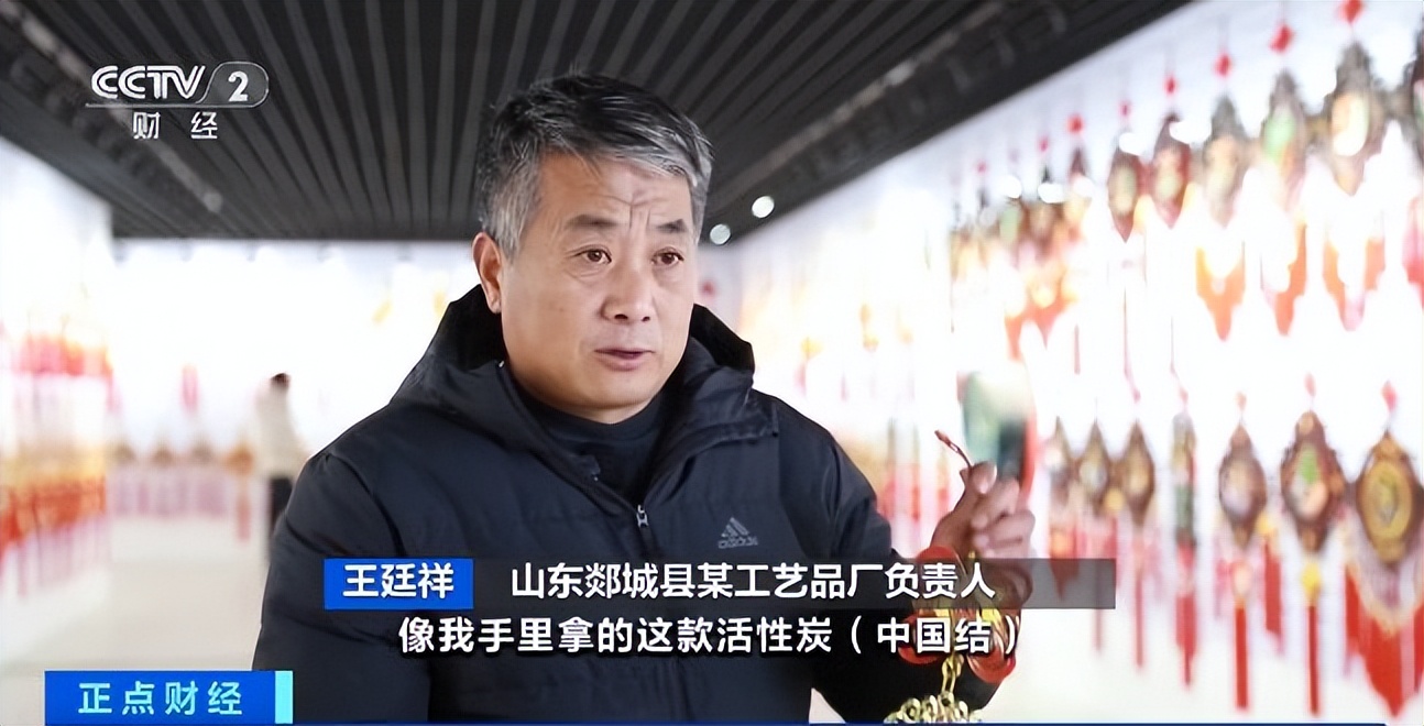 山东郯城县某工艺品厂负责人 王廷祥:我们聘请了专业的设计团队,对今年的产品进行了大更新,像这款活性炭中国结,它的功能是吸收甲醛,净化空气。适合家居摆放,受年轻人喜欢。