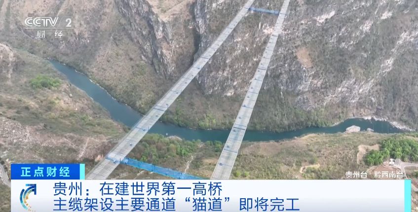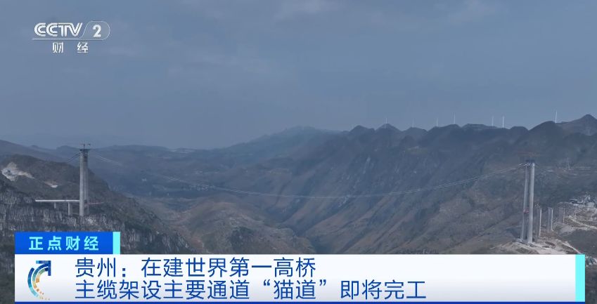 贵州:在建世界第一高桥主缆架设主要通道即将完工