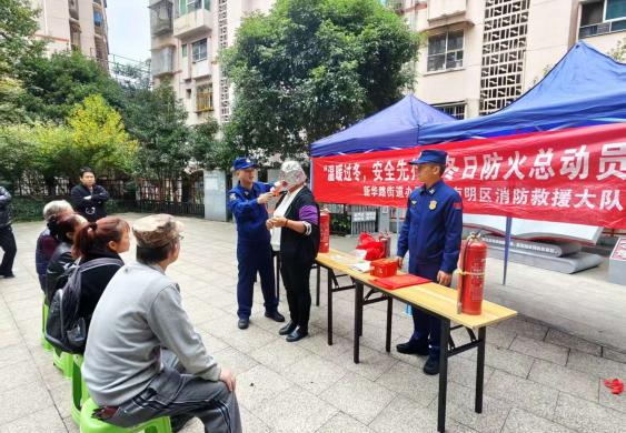 2025年11月6日,贵阳市南明区新华路街道办事处联合南明区消防救援大队开展了以“全民消防,生命至上”为主题的安全用火用电消防培训演练活动,旨在增强大家的消防安全意识与应急处置能力,为冬日安全保驾护航。此次活动邀请了辖区居民、企业代表、商户等50余人参加。