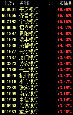 今天上午,大金融和大消费集体上涨。大金融方面,银行板块领涨,平安银行涨停,齐鲁银行、宁波银行等个股涨超6%。农业银行、中国银行盘中股价再创历史新高。