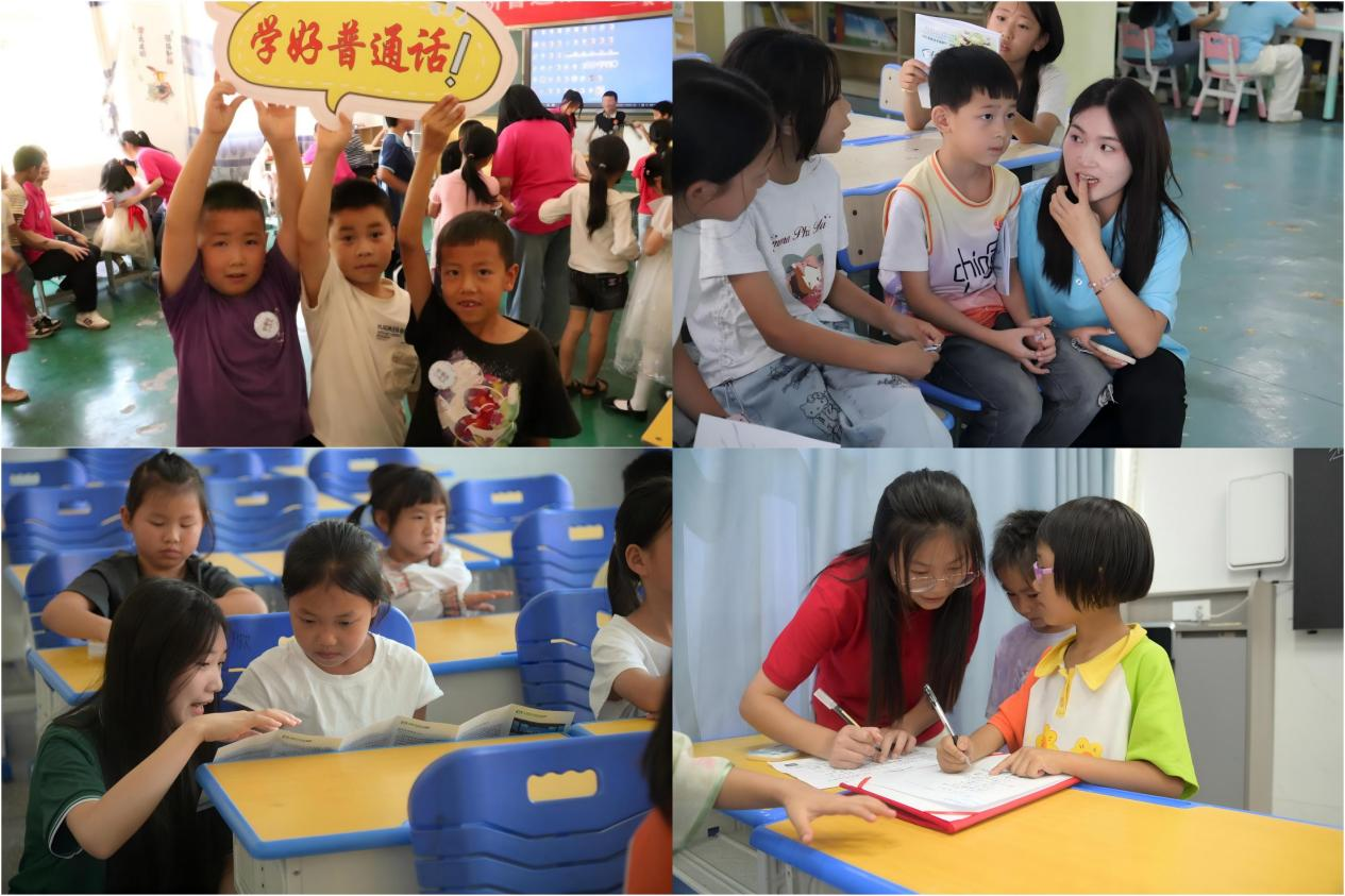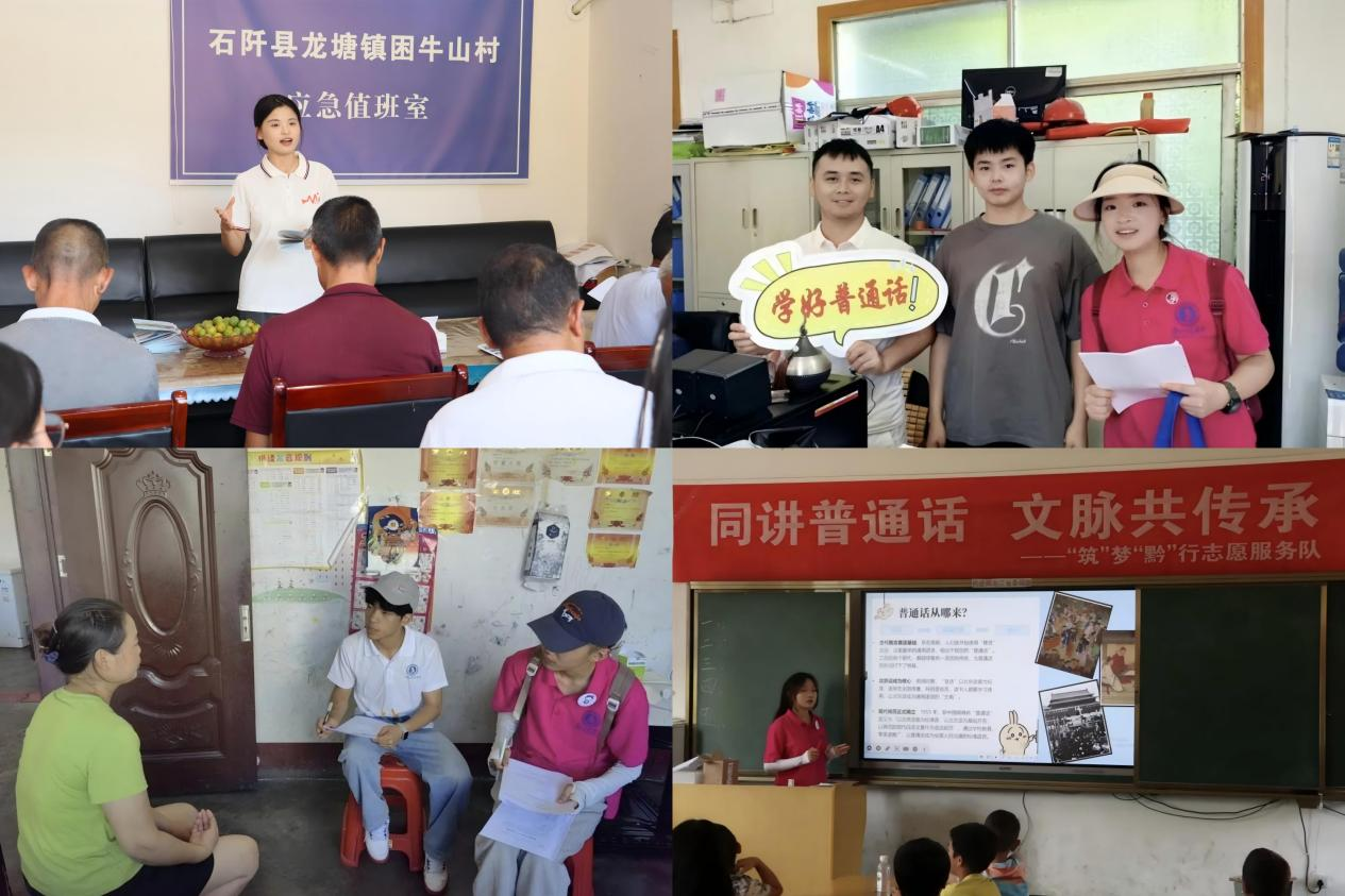 2025年暑期,贵州师范学院推普实践活动覆盖金沙、石阡、印江、正安、修文等10余个县市,开展活动数百场,直接服务群众及儿童超万人。活动不仅提升了村民的普通话应用能力,更通过语言桥梁促进了城乡文化交流、情感互通和产业发展。