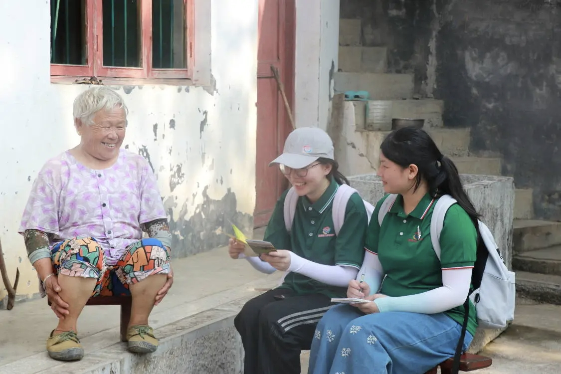 推普队员跟村中老人交流