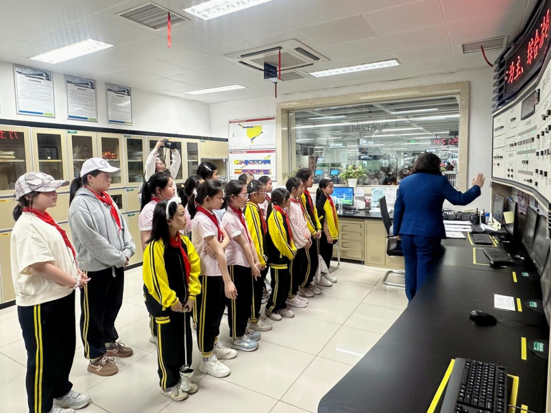 走进车站控制室,整齐排布的专业设备尽显严谨有序,同学们看得目不转睛。工作人员现场讲解了各类监控设备与操作控制台的功能及运作逻辑,通过实时监控屏幕,向大家展示了列车运行状态、车站客流情况、各区域设备运行参数等。同学们认真聆听、积极提问互动,直观了解到大玻璃背后的日常工作,深刻感受到地铁运营团队细致严谨、坚守岗位的责任与担当。