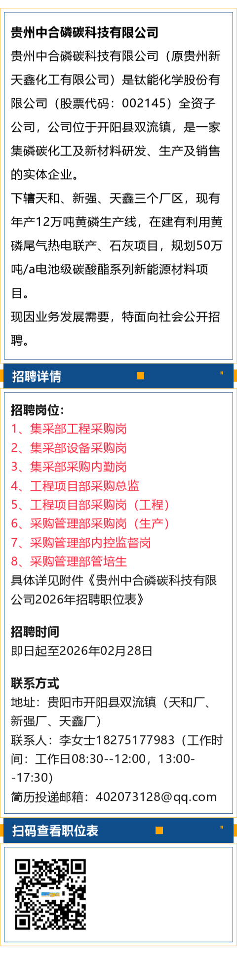 贵州中合磷碳科技有限公司8岗招聘!月薪4000-20000元!