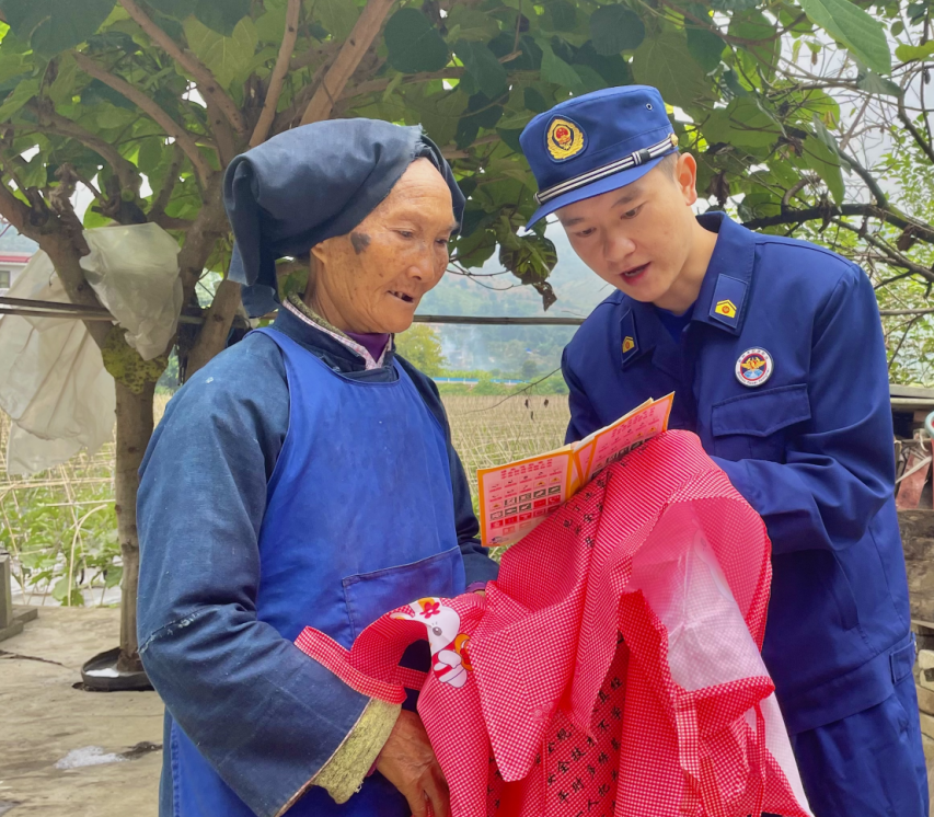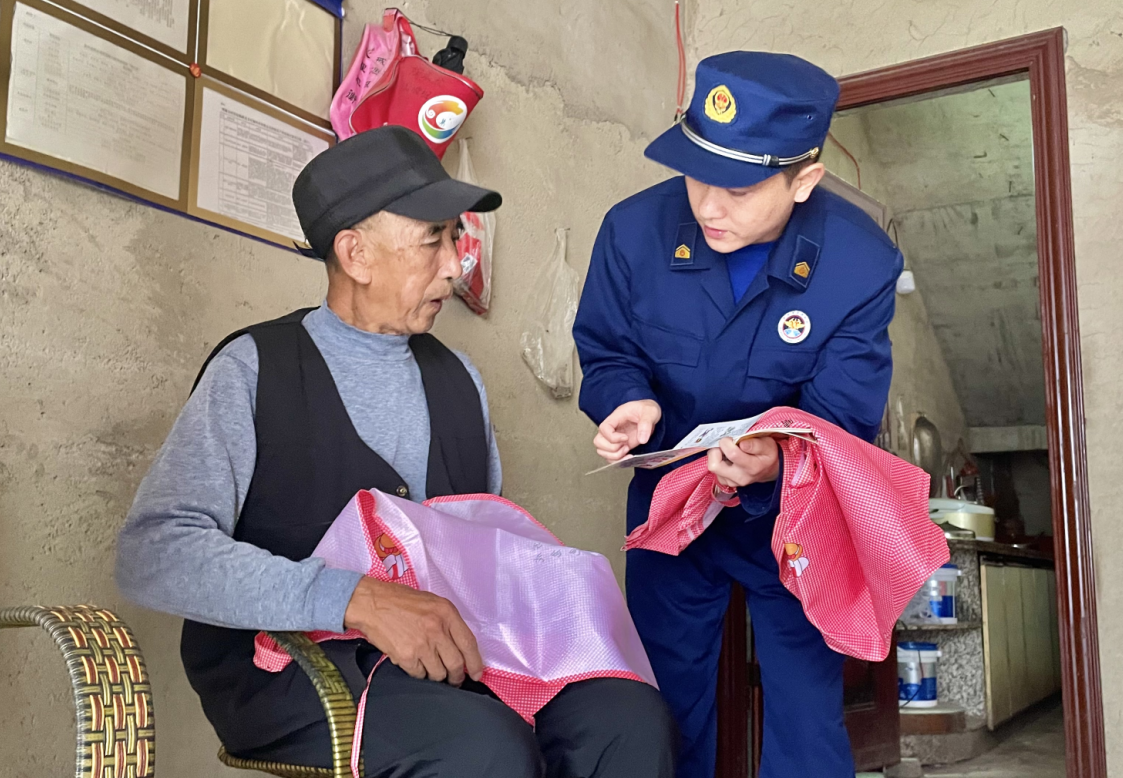 随后,消防宣传员又来到光照镇东方红社区团坡组和野麦冲村,通过走访和入户等方式,对70岁以上的老人进行消防安全宣传,共走访20余户。消防宣传员耐心地向老人们讲解家庭用火用电的注意事项,提醒他们不要私拉乱接电线,不要在炉灶旁堆放易燃物品等。