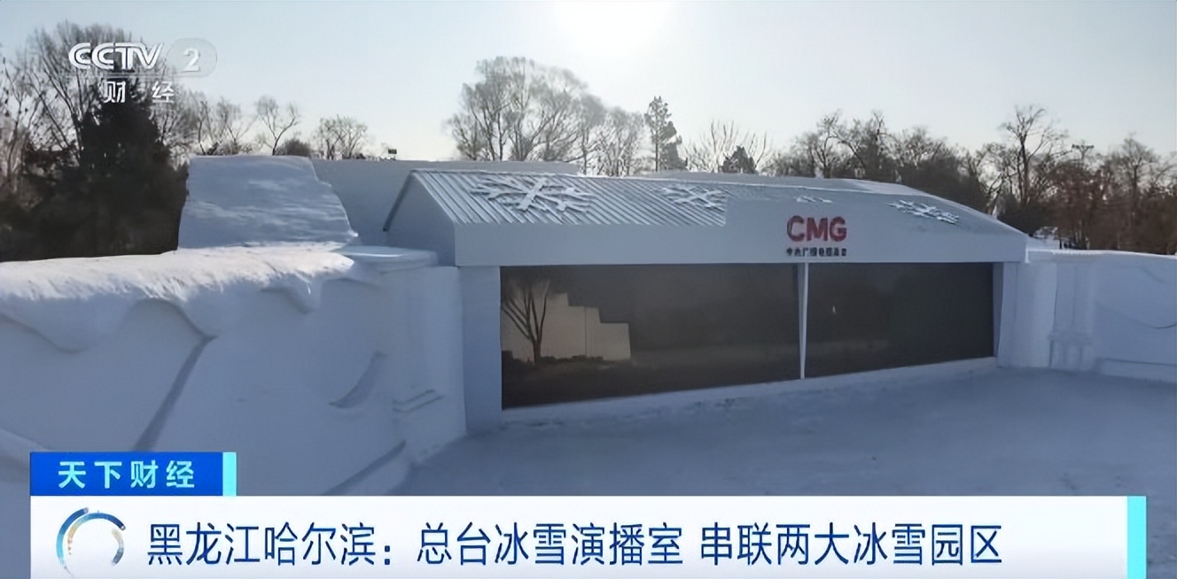 本届雪博会另一个别有特色的打卡点是中央广播电视总台的冰雪演播室,这是总台连续第二年在太阳岛雪博会建造冰雪演播室,它和冰雪大世界内的冰雪演播室遥相呼应,把冰雪大世界和太阳岛雪博会两个哈尔滨冬季旅游IP串联起来。