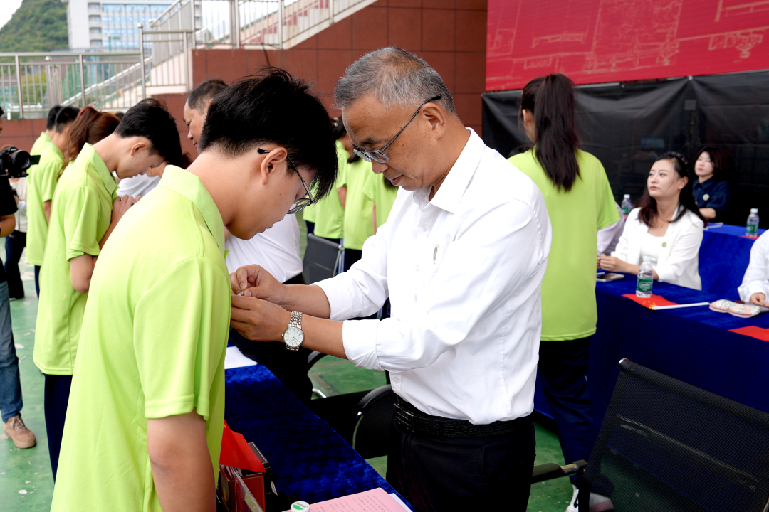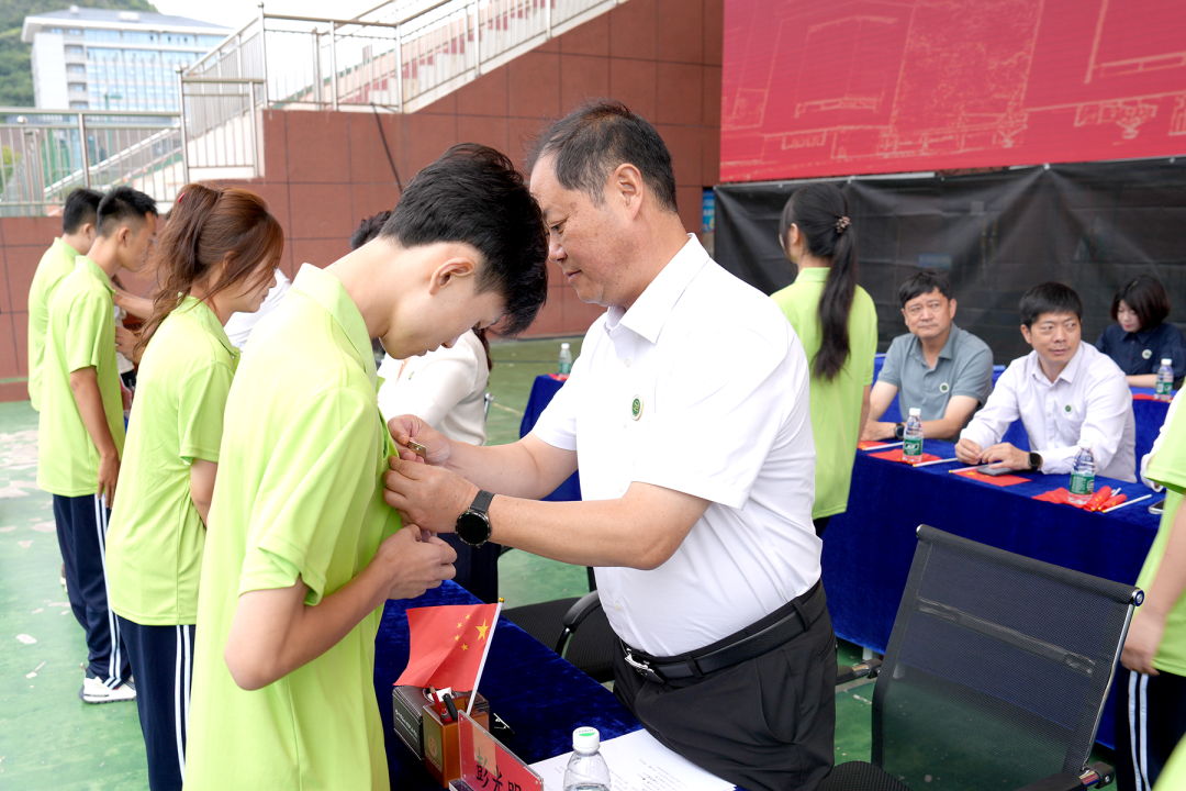 教师代表李薇、2025级新生代表赵代政依次发言。学院领导为2025级新生代表佩戴校徽。