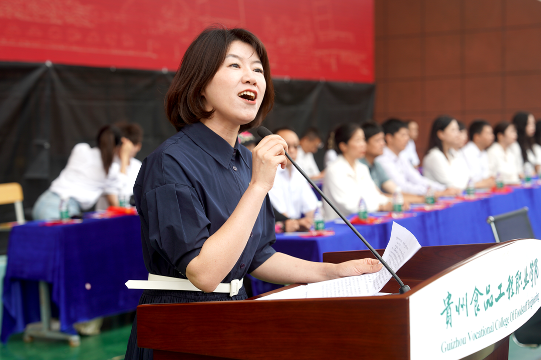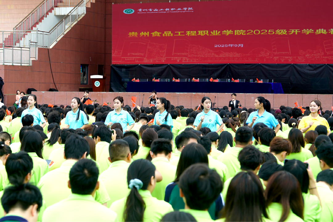 9月12日,贵州食品工程职业学院隆重举行2025级新生开学典礼。贵州食品工程职业学院党委书记彭光明出席,学院党委副书记、院长杜平出席并讲话,学院党委委员、副院长杨卫出席开学典礼。学院党委委员、副院长刘丹主持典礼。典礼在庄严的国歌声中拉开帷幕。