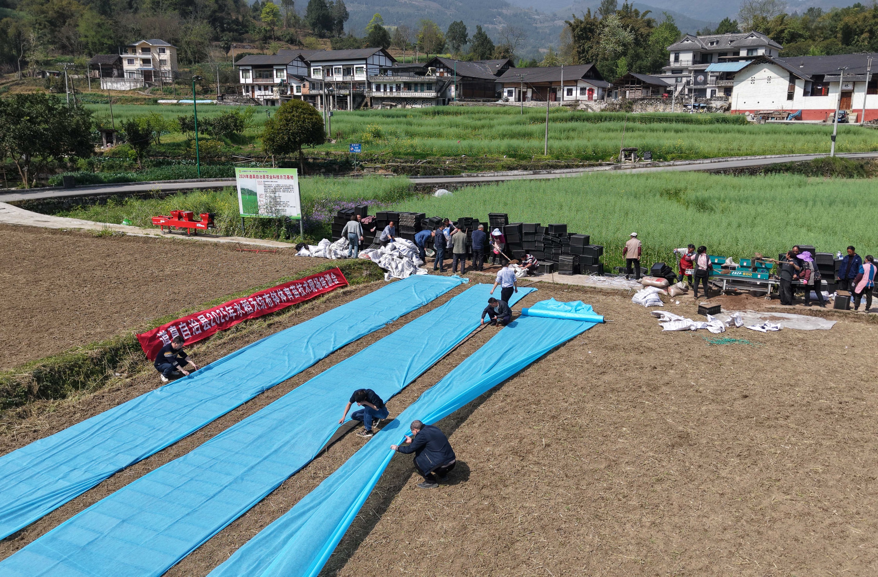 四月芳菲春意浓,大地换锦“春耕”景。在该村前进组百亩水稻种植基地,更是热闹非凡,贵州仡山红谷有机食品有限公司、道真县顶子农业有限公司正联合开展水稻无纺布钵体育苗,在育苗播种机“嗒嗒嗒”的震动声中,农技人员边查看、边指导,10余名工人分工合作、有条不紊,经过铺土、撒种、覆土、洒水等精细工序,一个个预示希望与生机的育苗盘整齐摆放在苗床上。