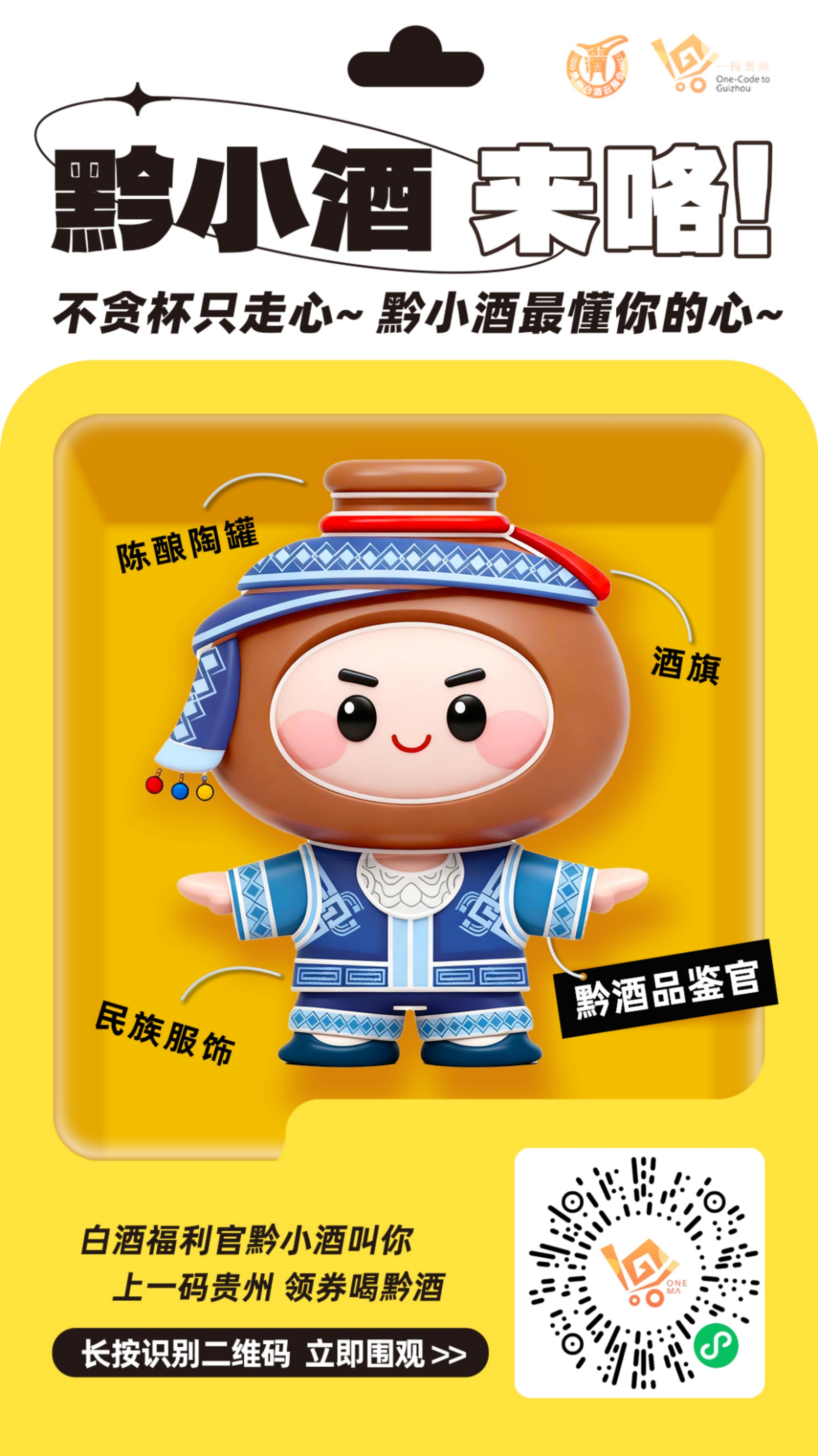 本次活动创新引入了贵州白酒文化IP形象——“黔小酒”,作为贯穿始终的消费向导与文化使者。该IP以头顶酒坛、身披苗族传统服饰的活泼小男孩形象出现,生动融合了贵州悠久的酿酒技艺与多彩的民族风情。在活动中,“黔小酒”不仅是一个视觉符号,更承担着“首席推荐官”的重要职能。它将通过系列线上内容、购物指引与场景化推荐,以亲切、有趣的方式解读白酒文化、推介优质产品,有效降低消费决策门槛,从而实现“以IP引领消费”的核心模式,为纯粹的促销活动注入深厚的情感价值与文化内涵。