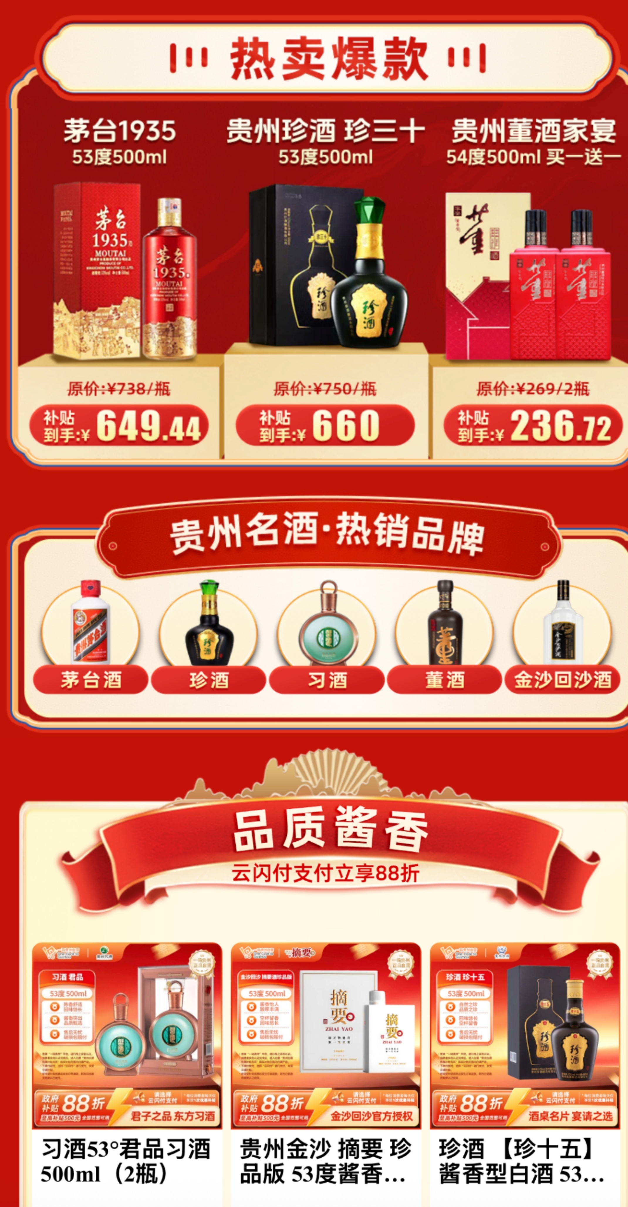 本次消费券活动的顺利开展,得益于一码贵州搭建的“贵州白酒云展会”坚实基础。白酒云展会自上线以来,便致力于打造一场“永不落幕的酒博会”,目前已吸引包括茅台、习酒、董酒、珍酒等在内的80余家贵州本土核心品牌入驻,上架产品近1000款,涵盖了酱香、董香、兼香等多种主流香型。此次消费券活动深度融合平台资源,确保消费者在享受政府补贴红利的同时,也能获得国企背书的品质保障与价格优势。