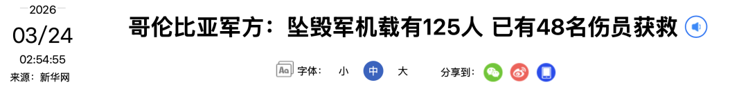 哥国防部长佩德罗·桑切斯早些时候在社交媒体发布消息说,这架运输机从莱吉萨莫港起飞时发生坠机事故。军方搜救部队已抵达事发现场,具体伤亡人数及事故原因仍在调查核实中。