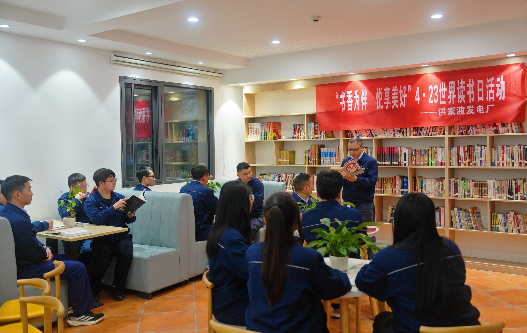 在第31个世界读书日来临之际,4月21日,洪家渡发电厂开展“书香为伴·悦享美好”世界读书日活动。20余名阅读爱好者齐聚一堂,共赴一场书香之约。