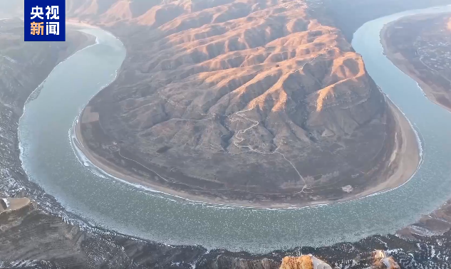 近日,受持续低温天气影响,位于晋陕峡谷之间的黄河乾坤湾段出现大面积流凌景观。从空中俯瞰,大大小小、形状各异的流凌漂浮于黄河水面,如碎玉撒江,似白花逐浪,冰花与蜿蜒曲折的河流相映成趣,勾勒出冬日黄河独有的画卷。(总台记者 王跃军 裴大伟 王钢)