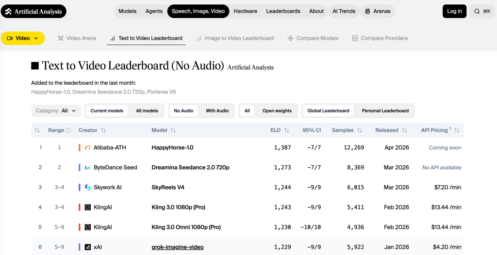 近日,在第三方AI模型测评平台Artificial Analysis公布的文生视频模型榜单Video Arena上,一个由匿名团队提交、名为HappyHorse-1.0的模型“空降”榜单榜首,超越了字节跳动旗下Seedance 2.0以及快手旗下可灵3.0等知名产品。