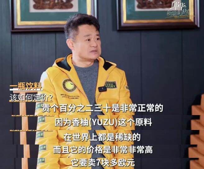 柚香谷创始人宋伟曾在公开采访中提到定价问题,他表示,价格由成本和品牌定位共同决定。香柚原料本身价格昂贵,一个香柚鲜果在欧洲要卖到7欧元,因此宋柚汁的定价比其他饮料贵上百分之二三十是正常的。