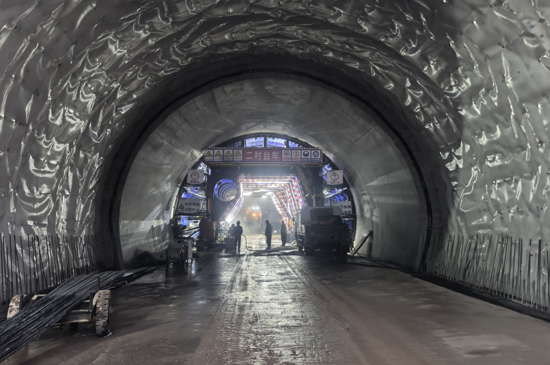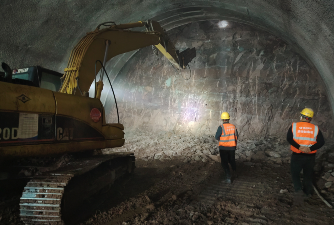 旺隆隧道为分离式特长隧道,右幅全长6439米,最大埋深约531米,左幅全长6432米,最大埋深约539米。旺隆隧道进口下穿大范围堆积体,需清除隧道洞口边仰坡开挖范围内的堆积体,放缓边坡,加强明洞边仰坡防护支挡,加长明洞确保隧道暗洞在堆积体下方的稳定岩层中进洞。截至目前项目已克服复杂地质,左洞进口已完成第二级边坡锚索安装;出口完成进尺48米、仰拱18米。右洞进口已顺利进洞,完成进尺30米;出口完成进尺99米,仰拱36米。