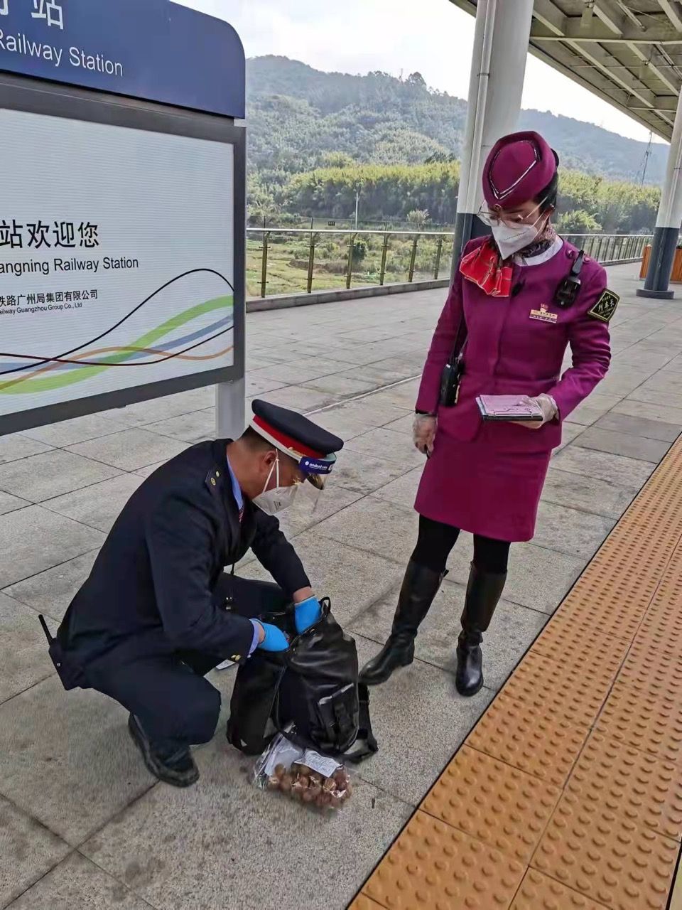 1月27日11时50分,贵阳北开往广州南的D2803次复兴号动车组列车接到一通紧急求助工单,一旅客下车时不慎将装有十万元现金的双肩包遗落在车厢内,列车长徐雯会同乘警全力搜索,最终完璧归赵。
