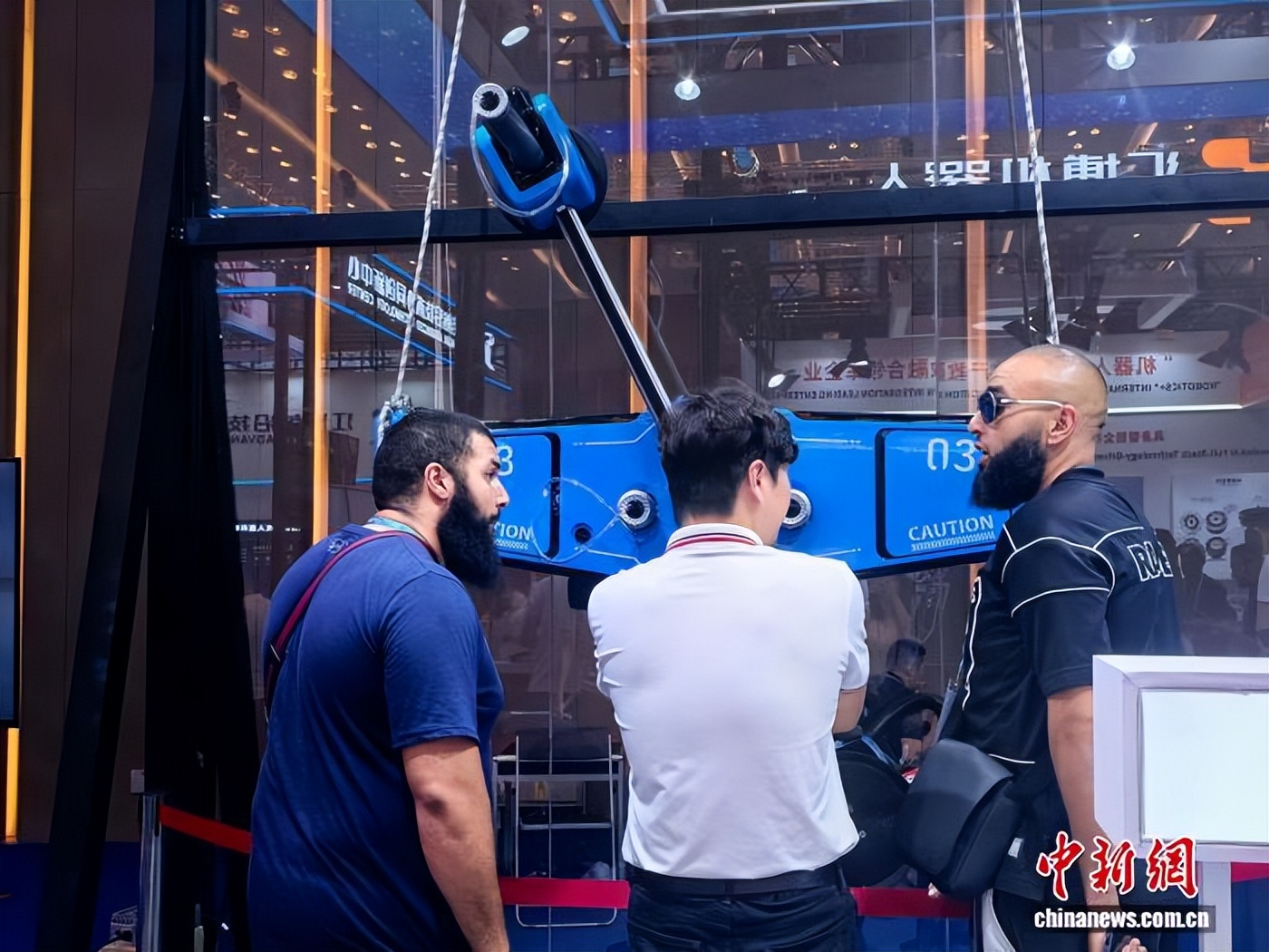 在广东凌度智能科技发展有限公司展位上,一款越障幕墙清洁机器人吸引众多采购商当场下单。该公司销售总监陈思宏介绍,这款高空幕墙清洁机器人吸附力强,具备实时水循环功能,节能高效,在阿联酋等国家广受欢迎。