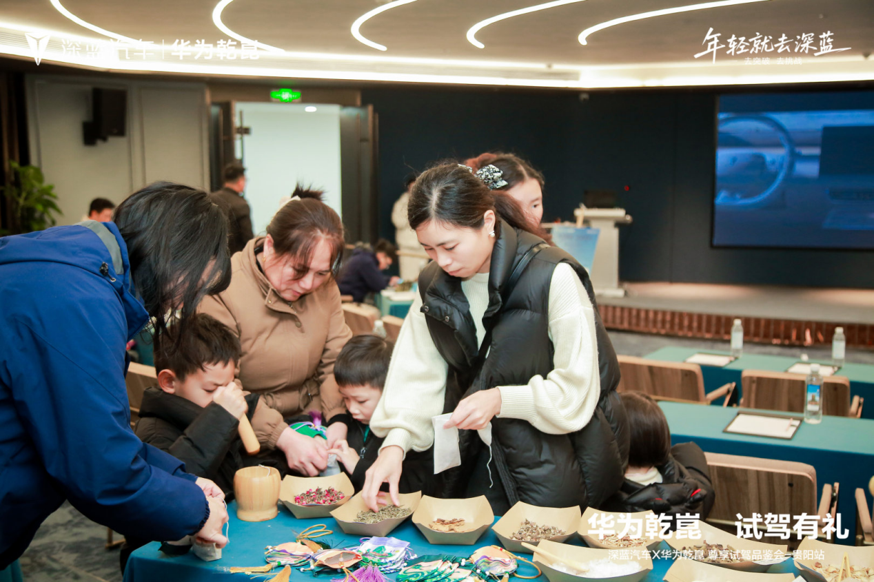 活动现场还设有手作体验区,互动游戏区,用户在专业老师指导下参与制作DIY香薰包、套圈、投壶等游戏,现场订车的客户还抽取到超值大礼。在冬日寒意下,深入感受深蓝汽车倡导的智慧出行与温情生活相融的品牌内涵。