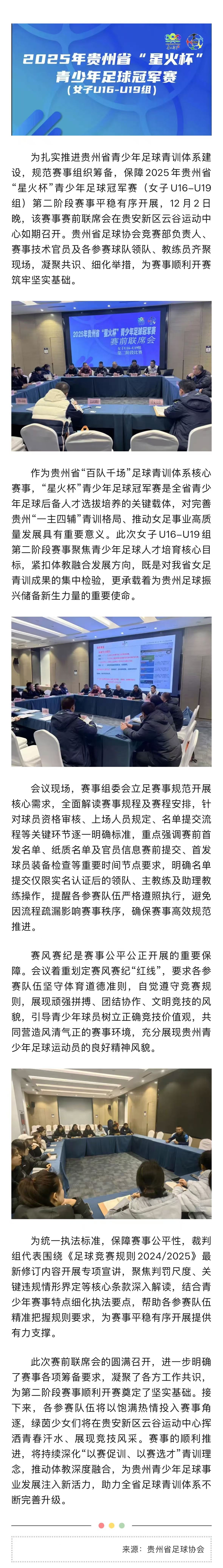 绿茵蓄势待发 星火再燃征程——2025年贵州省“星火杯”青少年足球冠军赛(女子U16-U19组)第二阶段赛前联席会召开