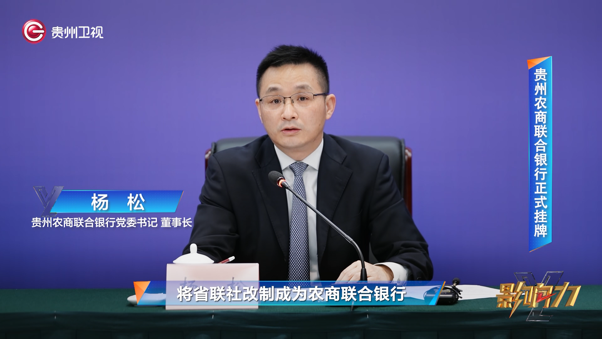 杨松 贵州农商联合银行党委书记 董事长:我省这次深化农村信用社改革,将省联社改制成为农商联合银行,同时由贵州农商联合银行自上而下注资推动组建9家市(州)农商银行,是“承继式升级、提质性转型”,真正把全省农商银行打造成服务乡村振兴的主办银行、支持小微企业和民营经济的主要银行、服务地方经济发展的主力银行。