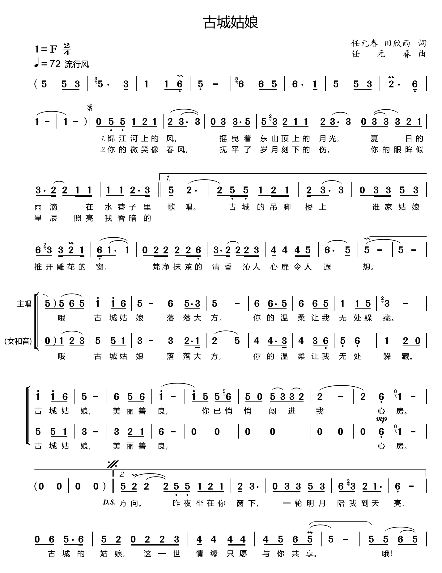 词曲:任元春、田欣雨