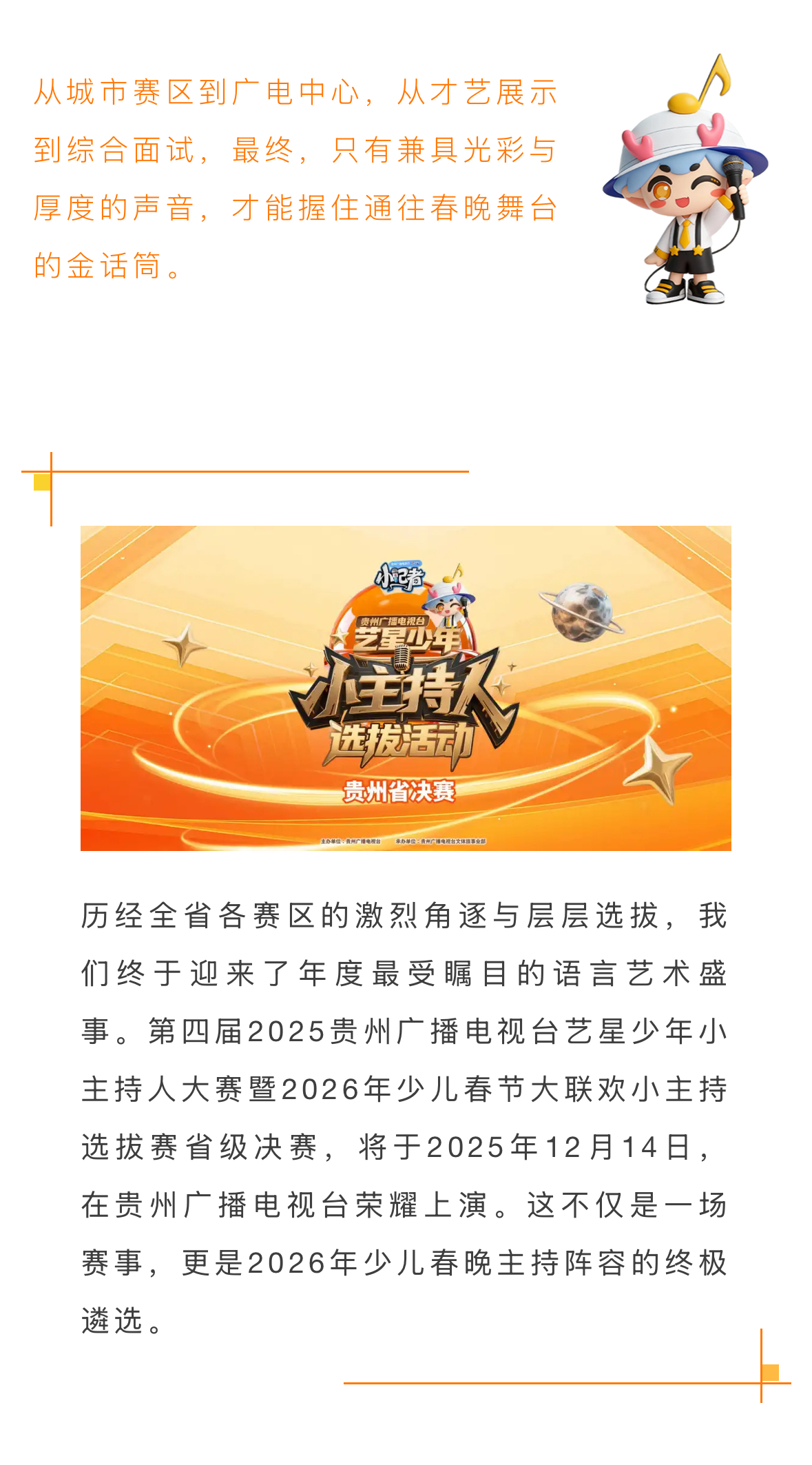 终极舞台,深度考核!第四届2025贵州广播电视台艺星少年小主持人大赛暨2026年少儿春节大联欢小主持选拔赛省级决赛权威开启!