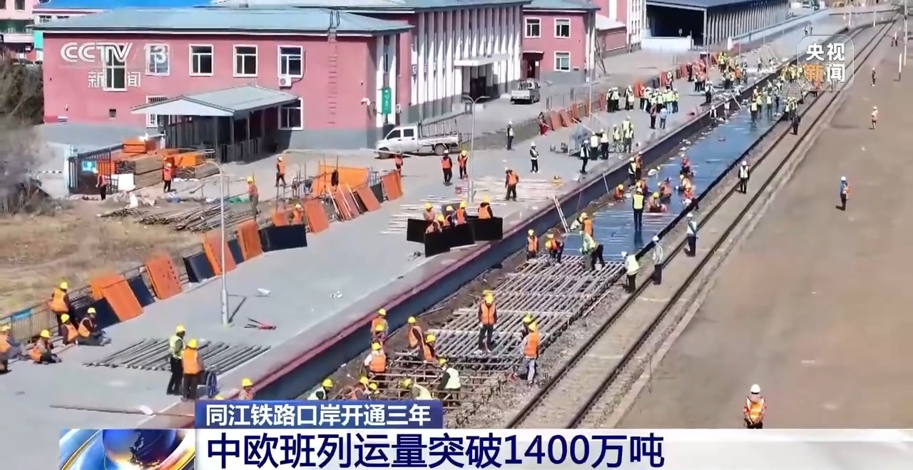 记者今天(11月18日)从国铁哈尔滨局了解到,中欧班列东通道同江铁路口岸开通三年来,货运量已累计突破1400万吨。
