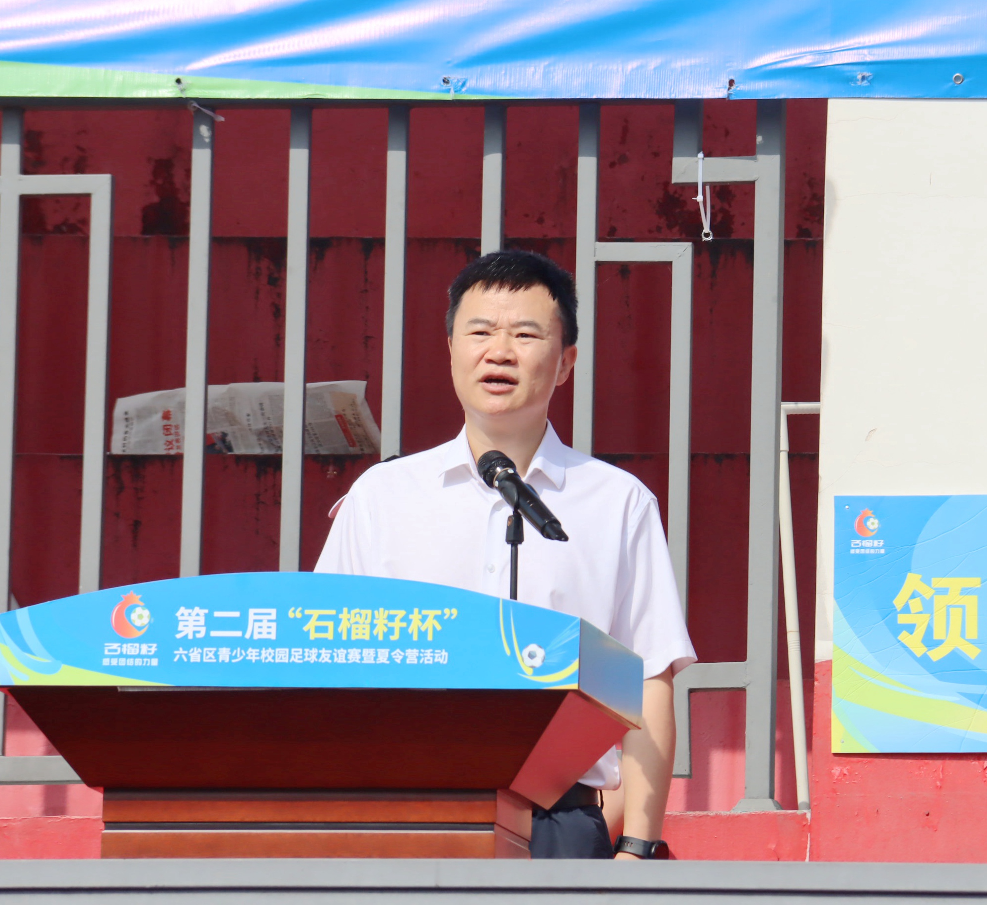 李军在开幕式上热情欢迎各代表队,介绍了贵州的自然文化资源。他强调:“‘石榴籽杯’不仅是足球赛事,更是民族团结的生动实践,期待各族青少年以球会友,共奏‘中华民族一家亲’的乐章。”