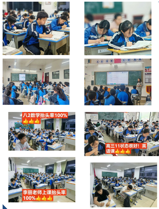 课堂上,学生们坐姿端正、认真听讲,紧跟老师教学思路,积极思考、主动互动,课堂纪律严明,学习效率高效,各科教学活动平稳有序高质开展。