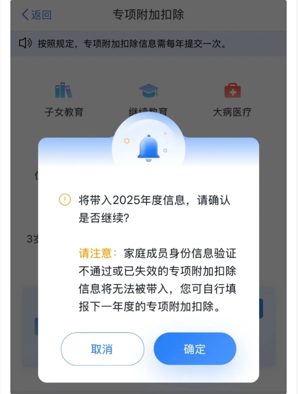 确认2026年度个税专项附加扣除信息