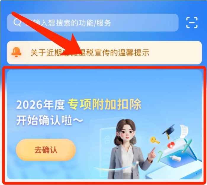 在手机上打开个人所得税App,在首页选择“2026年度专项附加扣除填报”。