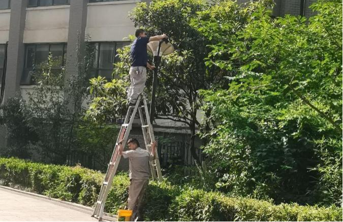 兰凯社区党支部立即联合双报到单位世纪颐和物业实地察看了路灯损坏和灯罩内蚊虫情况。物业派出专业人员对苑区42盏路灯进行了专业的检修,更换灯泡9盏,蚊虫消杀及清洁51盏,受益人数4300余人。